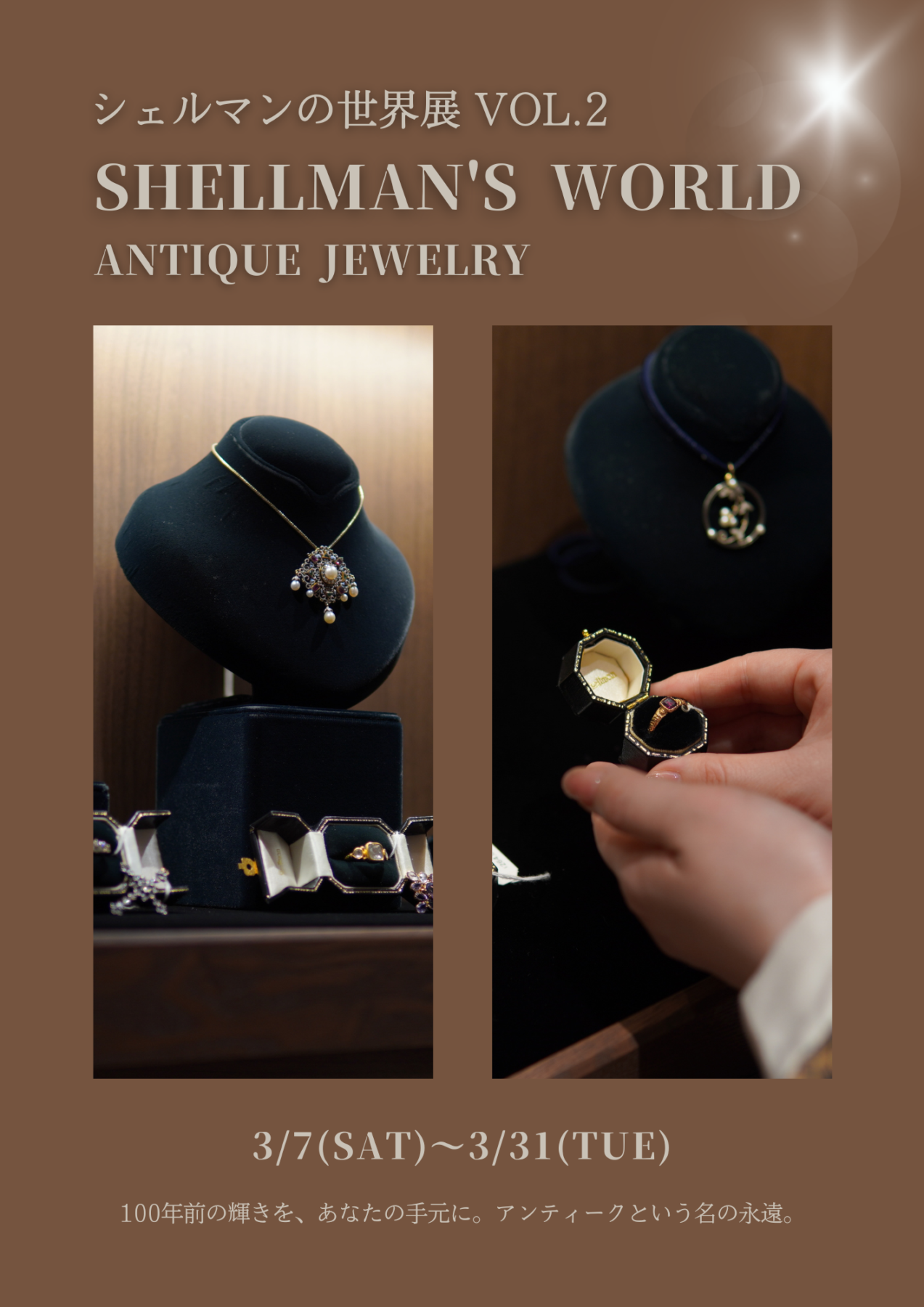 銀座店スタッフの豊村が青山店からセレクトしたアンティークジュエリーを銀座でお愉しみいただけるイベントとなっております。