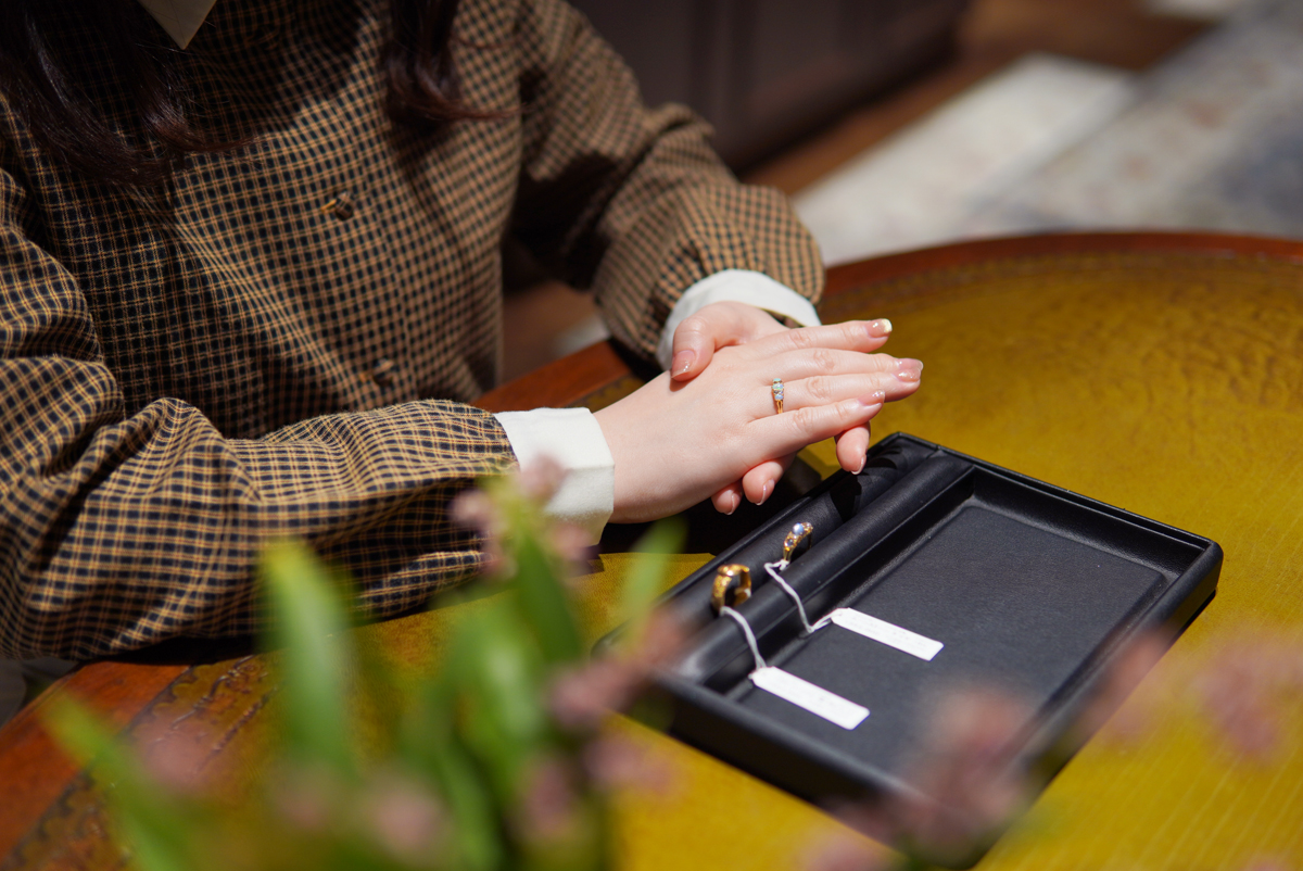 毎日ジュエリーに触れている私たちとはまた違う、新鮮な驚きや美しさへの感動が、彼女の指先から伝わってくるようでした。