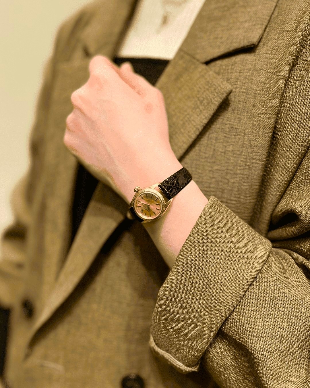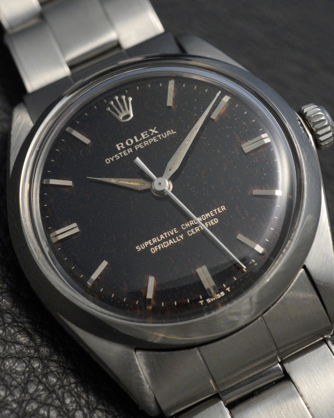 ロレックスのブラックダイヤルは幻想的にブラウンチェンジした個体。このアートのようなエイジングこそヴィンテージの醍醐味であり、決して新品の復刻などでは表現できません。