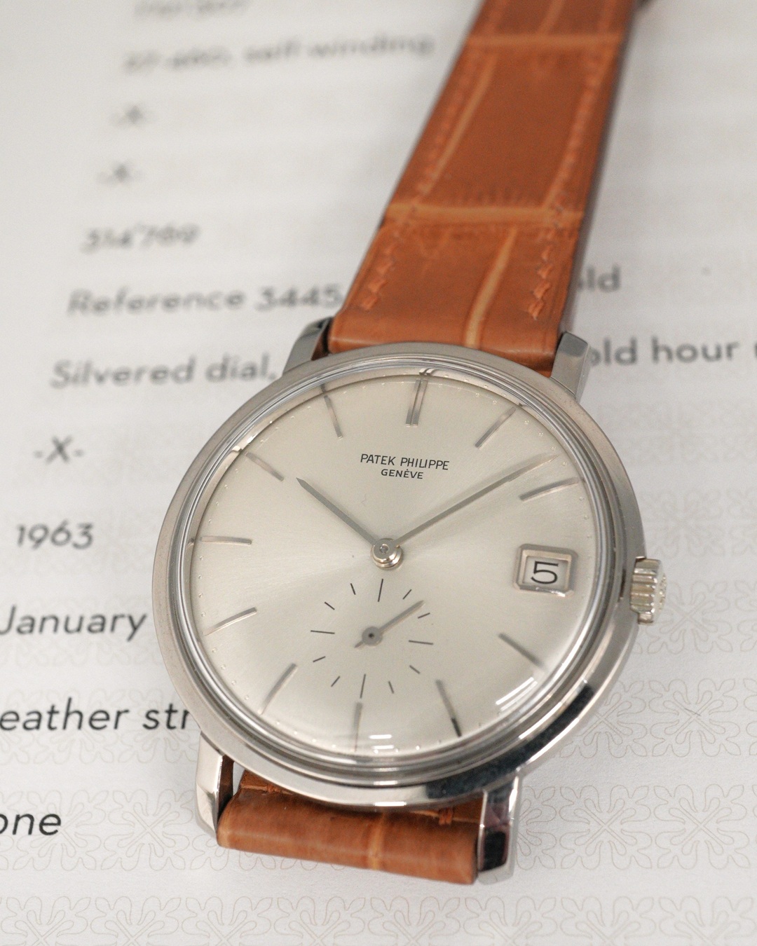 パテック・フィリップ Ref.3445 ヴィンテージパテックの中でも使い勝手が非常に高いモデル。なんですがここ最近は市場でも枯渇気味で中々見かけないモデルになりつつあります。自動巻きかつ防水ケース。初めてのヴィンテージパテックでも比較的安心してお使いいただけるモデルです。1963年製