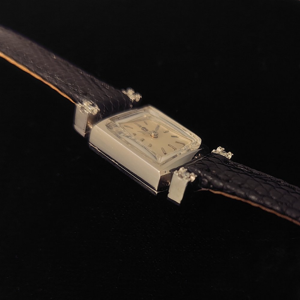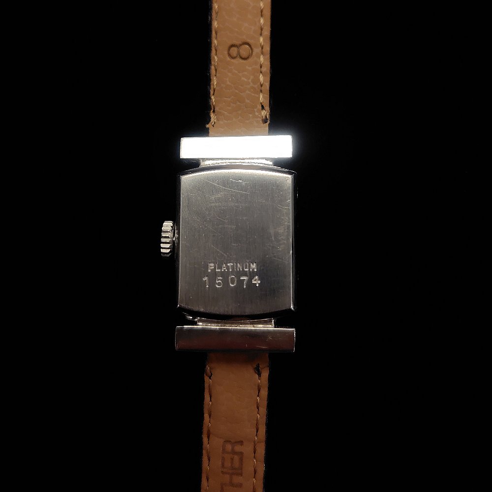 一見ステンレスにも見えますが、実はこの時代のシンプル系時計としては珍しいプラチナが使われています。